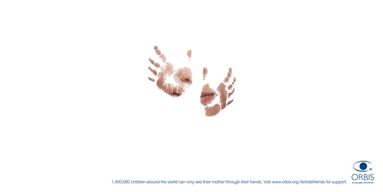 一个关注盲童的公益广告-全世界有1,400,000的孩子只能用他((她)们的手来看亲爱的父母,心爱的宠物和自己。2