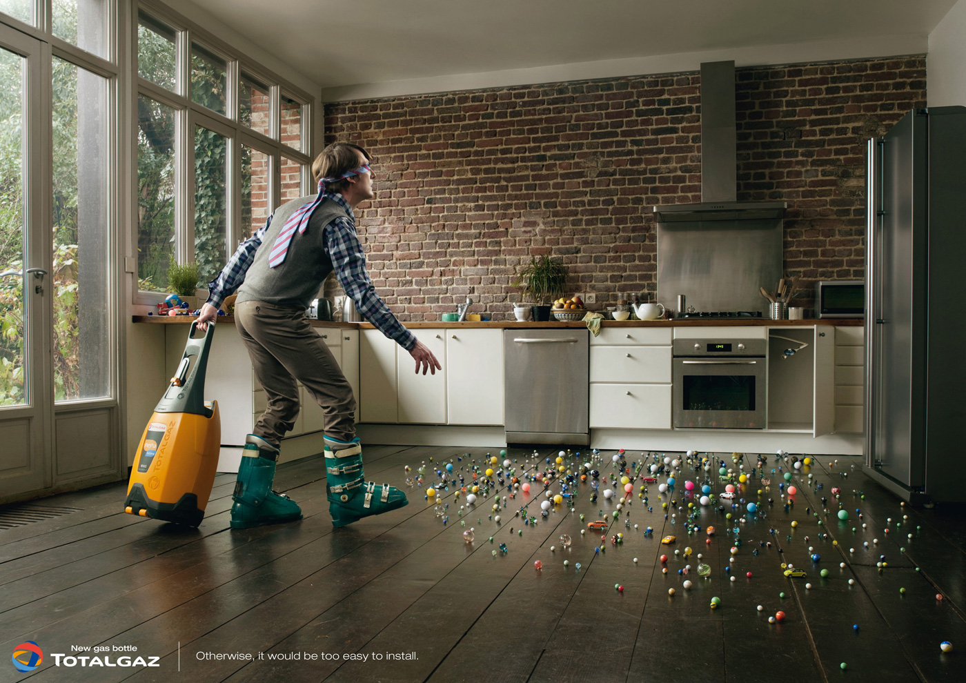 Totalgaz((天燃气公司)天燃气罐的创意广告-除非这样去阻止他,要不然它是很容易被安装的。1