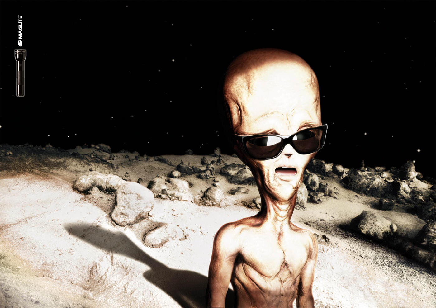 Maglite手电筒宣传广告-超强光照距离,可以照到外星球上2