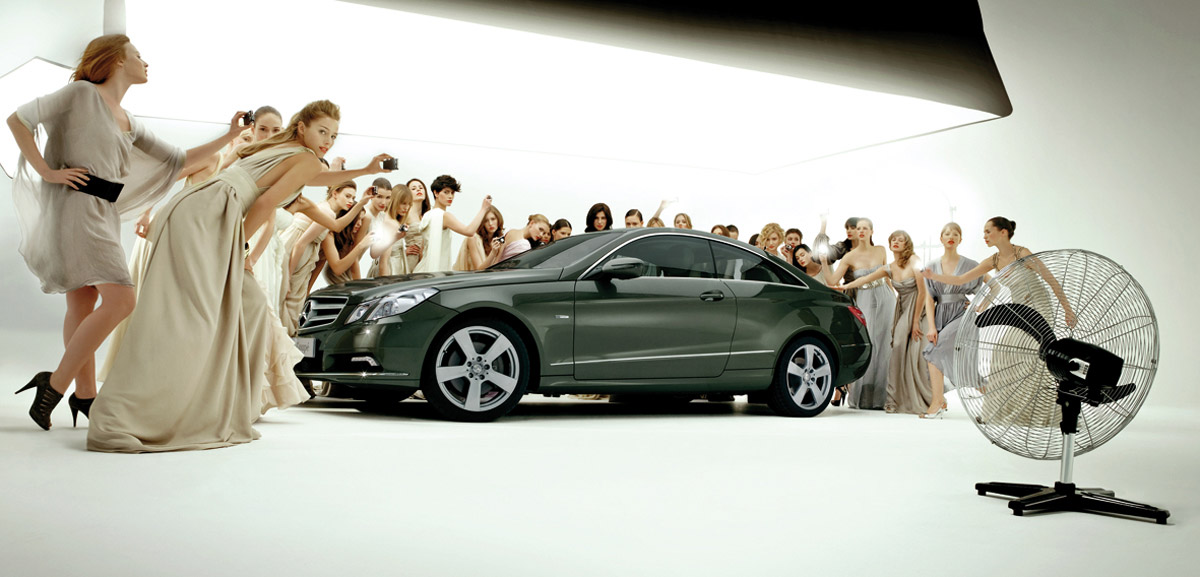 Mercedes-Benz奔驰E级轿车车的宣传广告-香车美女,一样都不能少