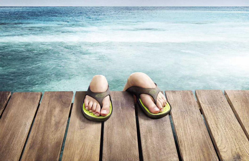 Scholl爽健足部鞋履产品的宣传广告-救命拖鞋Deck