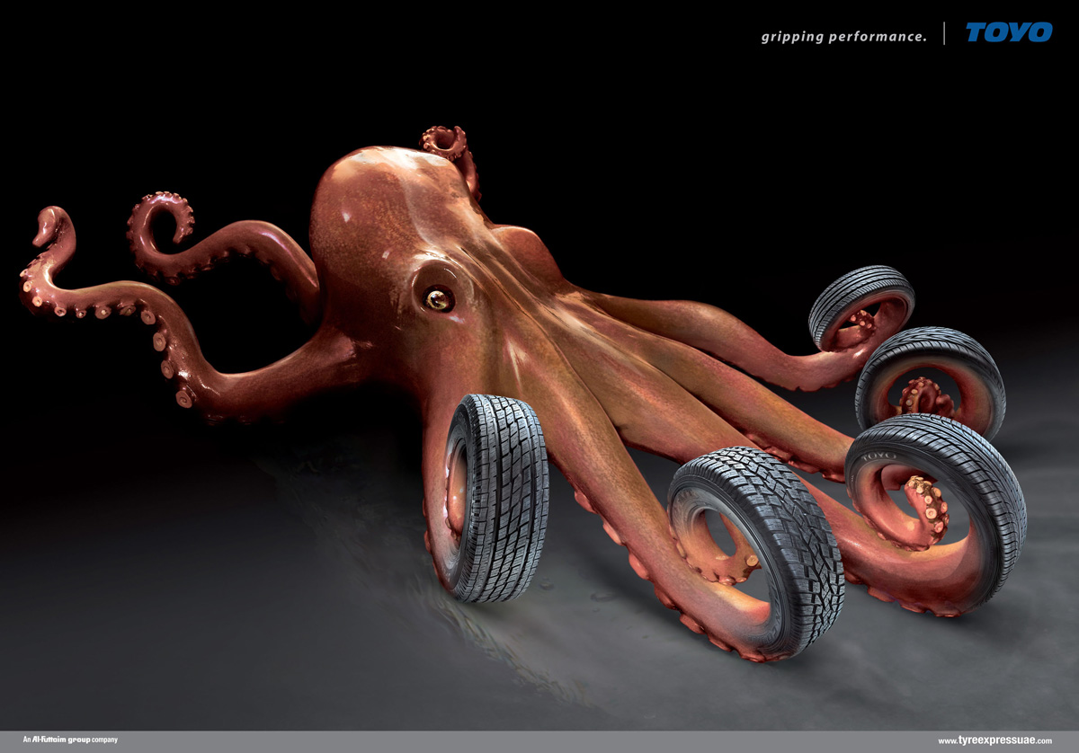Toyo东阳轮胎的宣传广告-象章鱼一样的抓地力