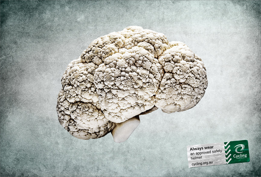 澳大利亚自行车协会-已经批准的安全头盔,暗指要多吃蔬菜有益健康+Cauliflower