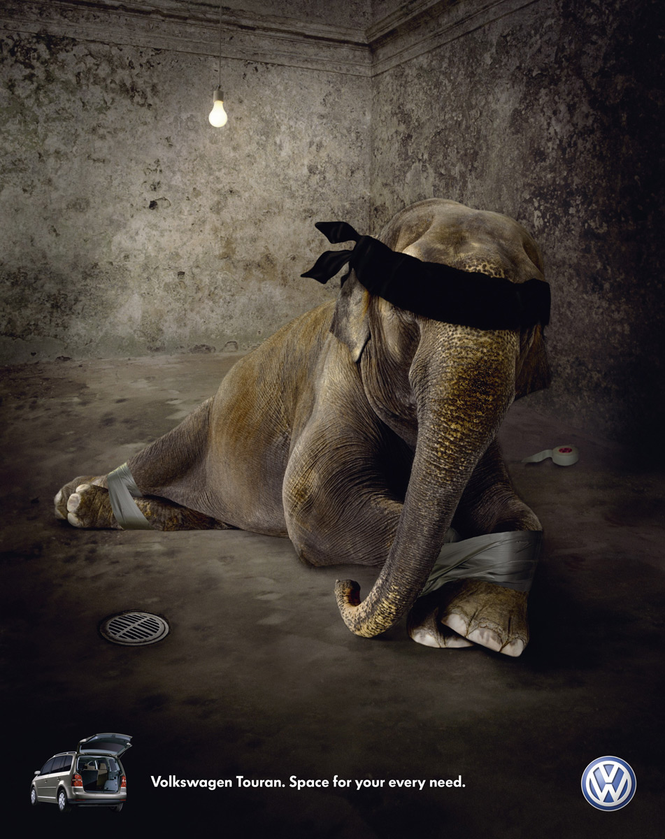 大众途锐汽车汽车的宣传广告-绑架大象