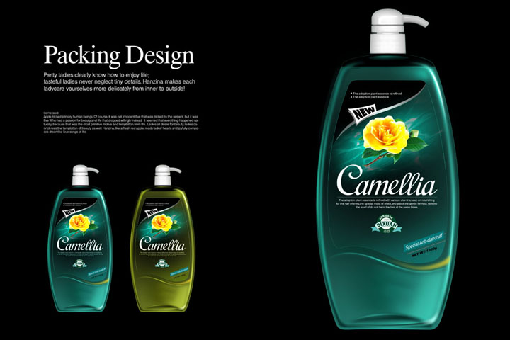 camellia洗发水瓶包装设计