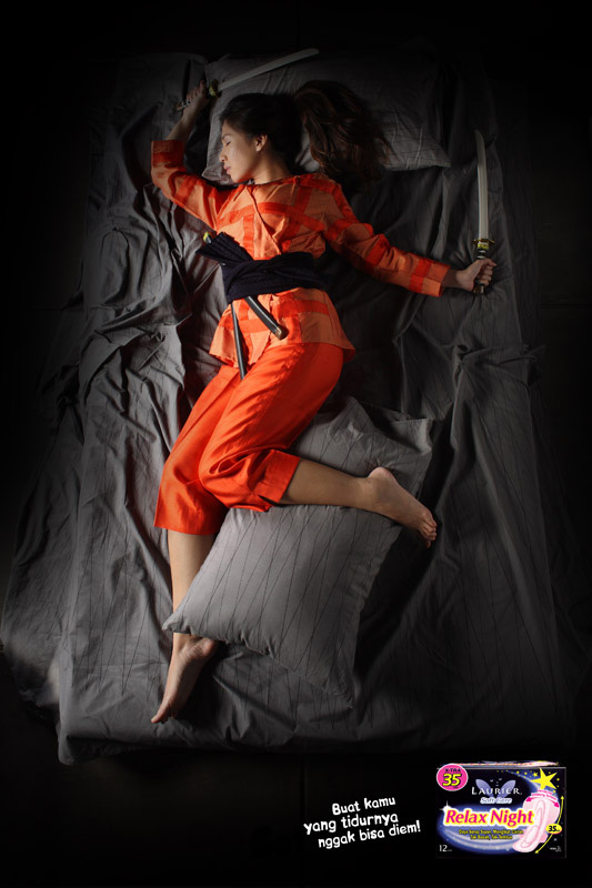 Laurier卫生巾的宣传海报-夜晚怎么样…