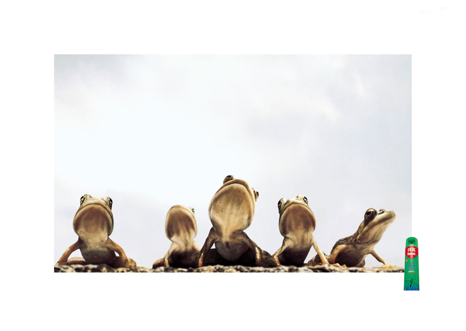 拜高飞虫杀虫水广告-青蛙们饿得相互…